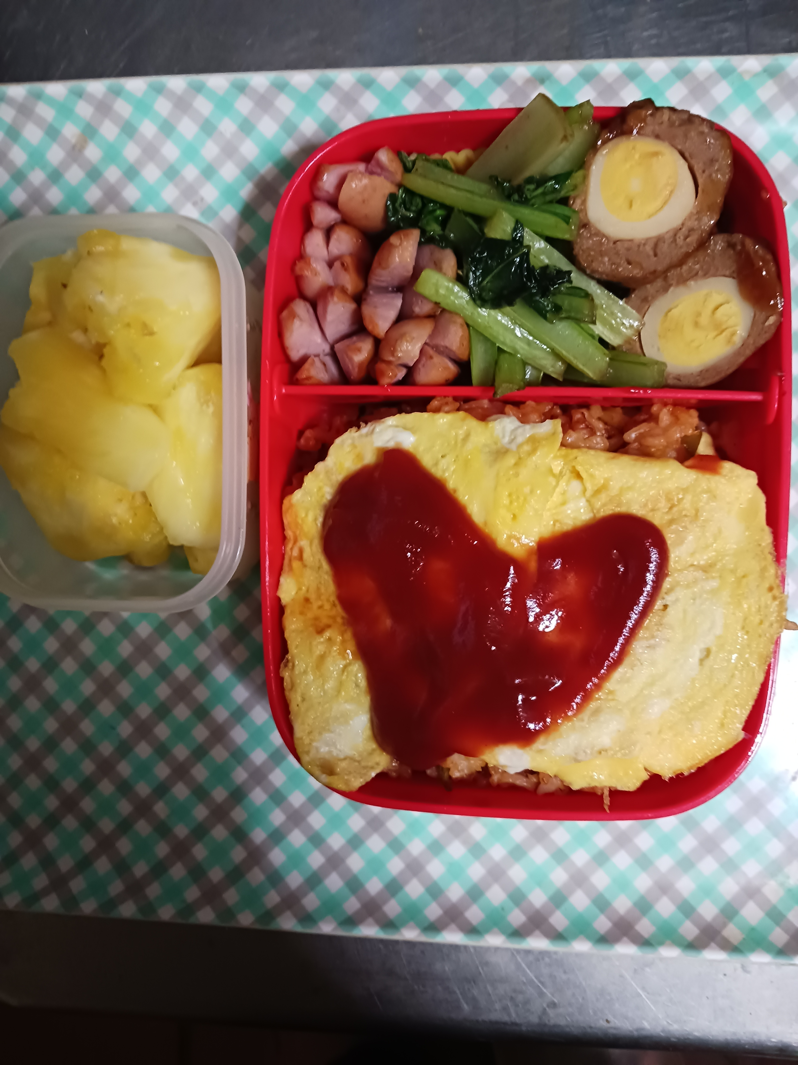 オムライスのお弁当に♥️のケチャップ🍅とっても美味しそうです😊