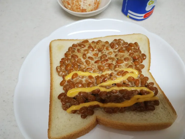 納豆にマヨネーズを初めて合わせてみました。(納豆+タレ+マヨネーズ)