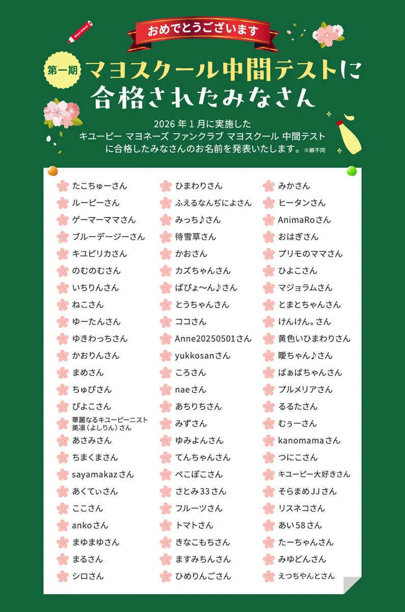 そして今回見事合格された方には、後日メールにて、合格者限定特典のキユーピー新商品のご案内をいたしますのでおたのしみに!