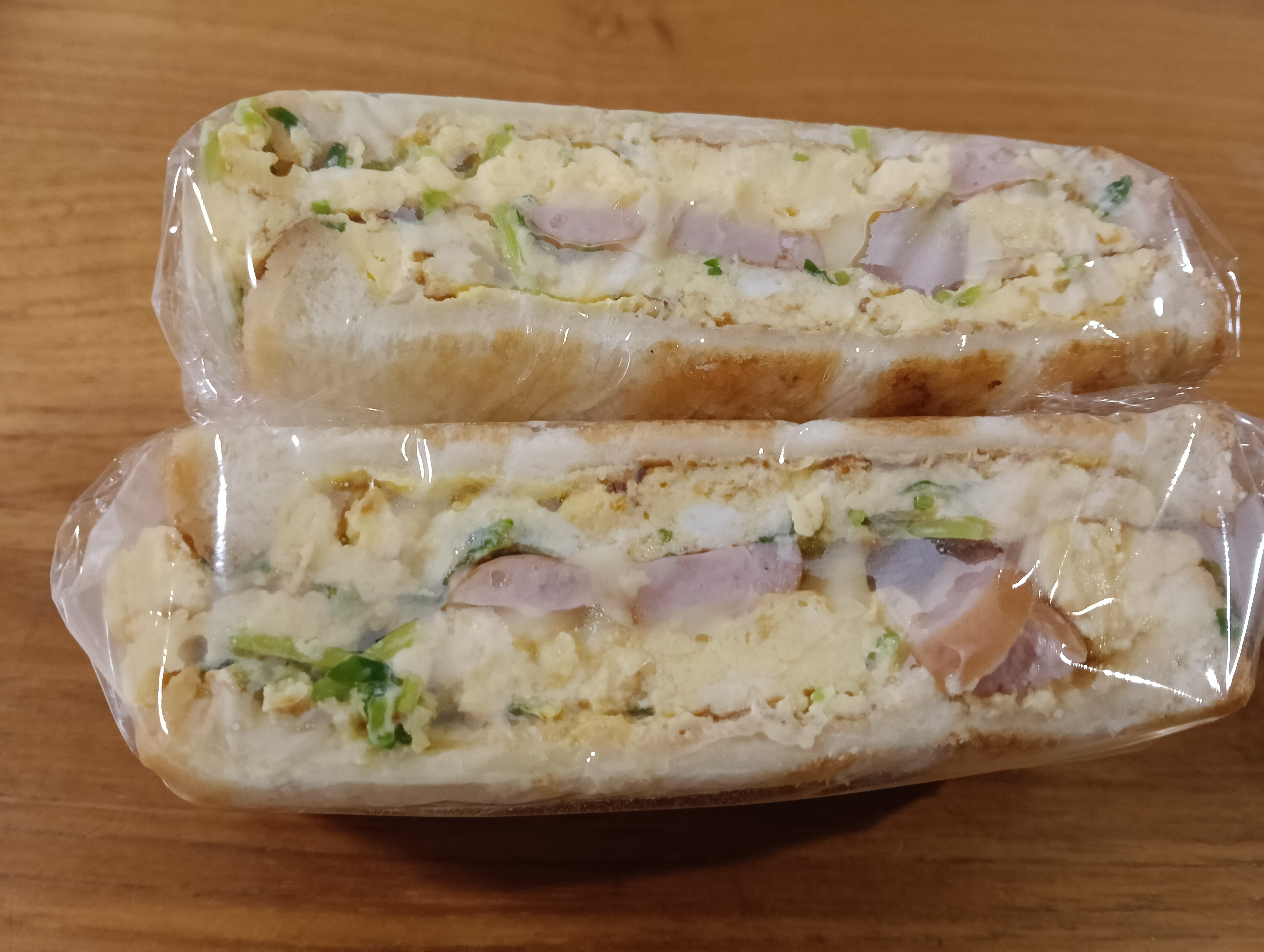 久しぶりにお弁当にサンドイッチを作りました(^^)ふわふわの卵焼きに、ウインナーとチーズも挟みこんで♡