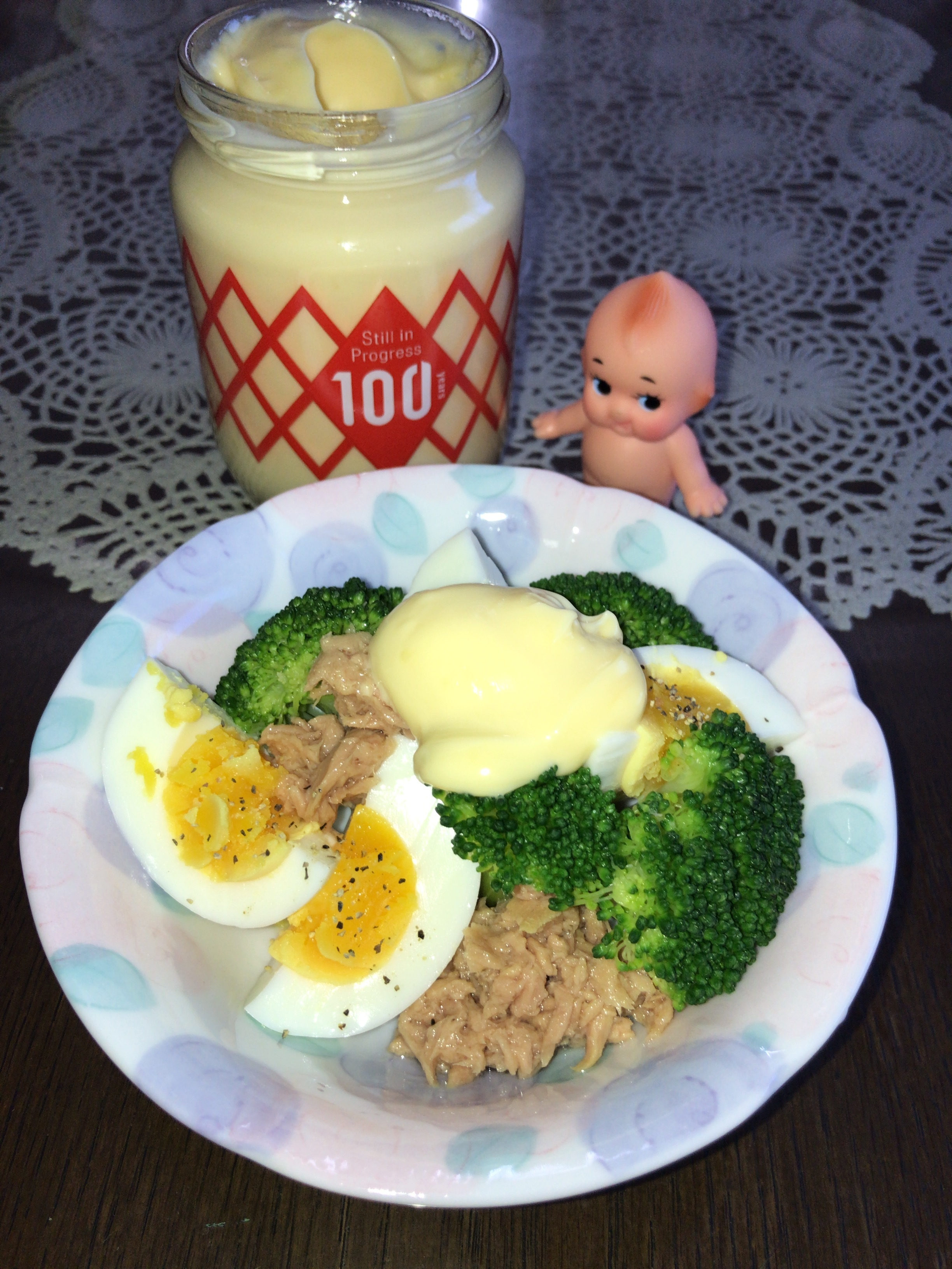 サラダにたっぷり瓶マヨ、美味しそうですね🍴😋