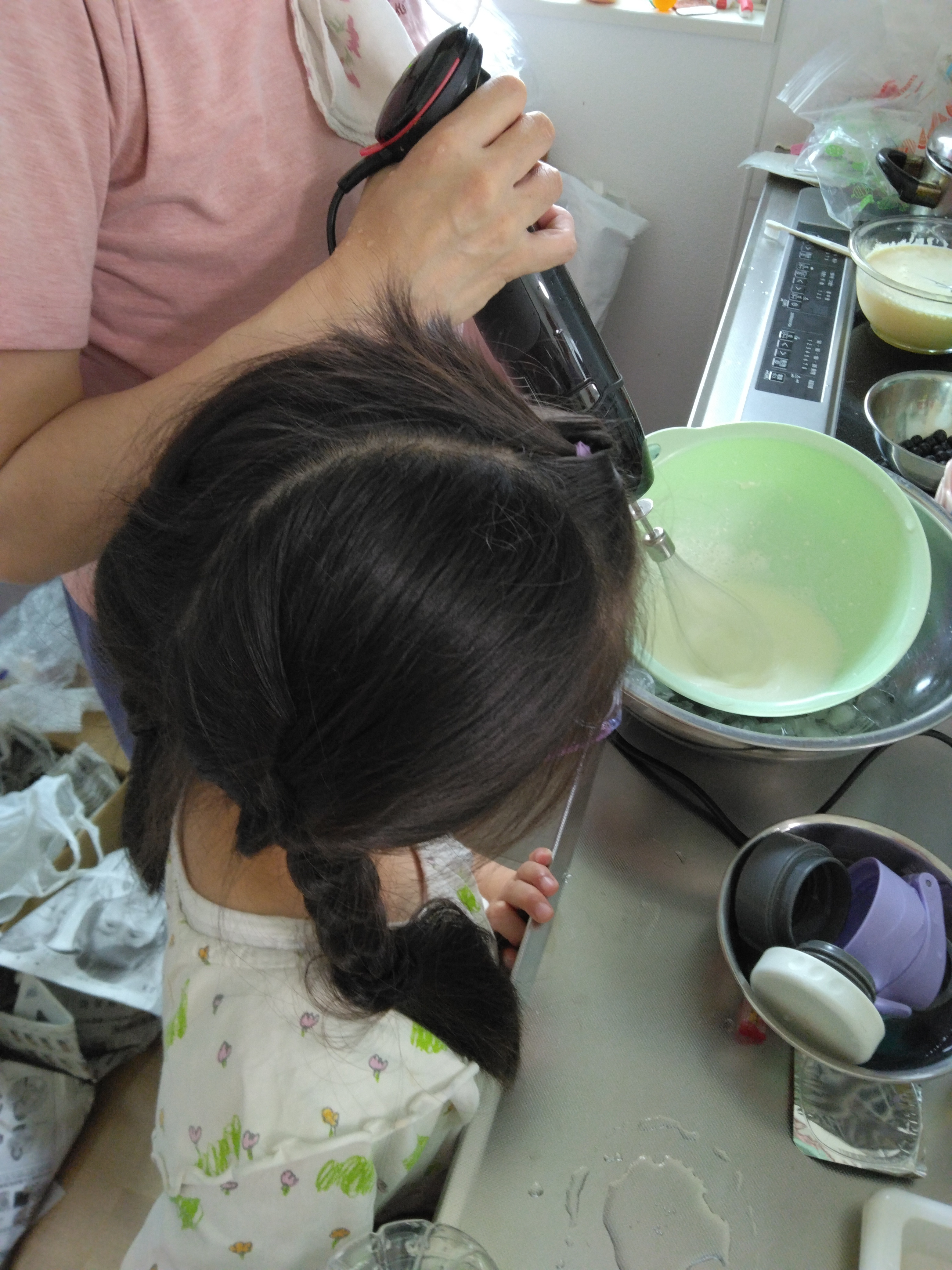 お子さんと一緒に台所に立つのは楽しいですね💕美味しい😋アイスクリーム🍨が出来たかな🥰