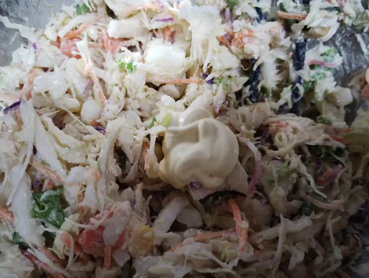サラダクラブさんの 1日分の野菜がとれる彩りミックスサラダとQummyさんのポテトサラダを和えました