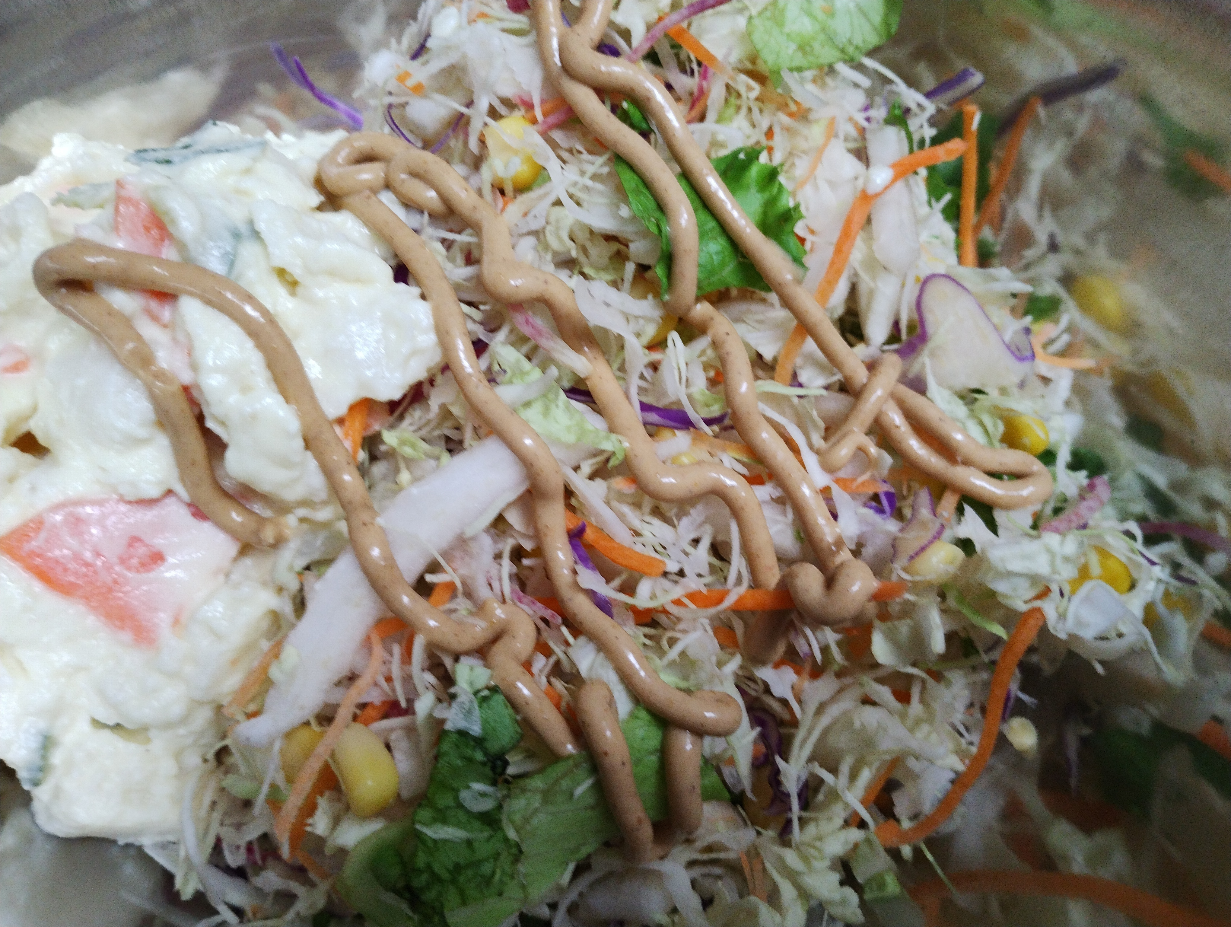 野菜サラダ+ポテサラ和え(しびれ麻辣味+ハーフ)