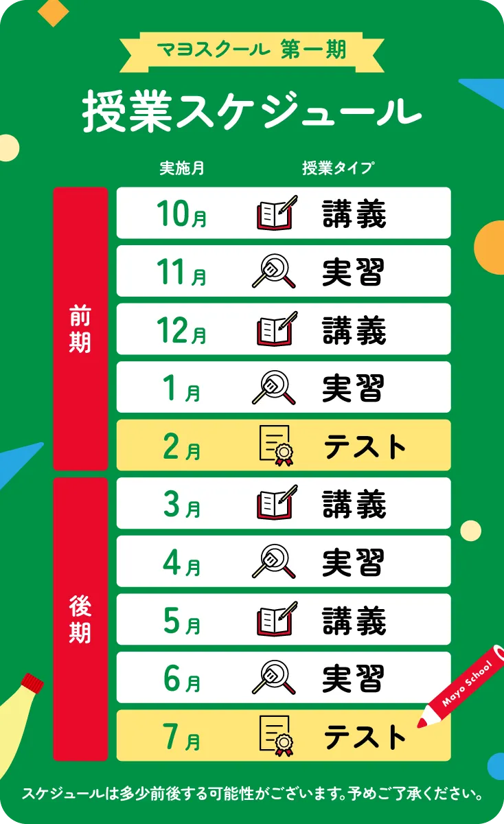 マヨスクールは前期と後期に分けて授業とテストを受けていただけます!