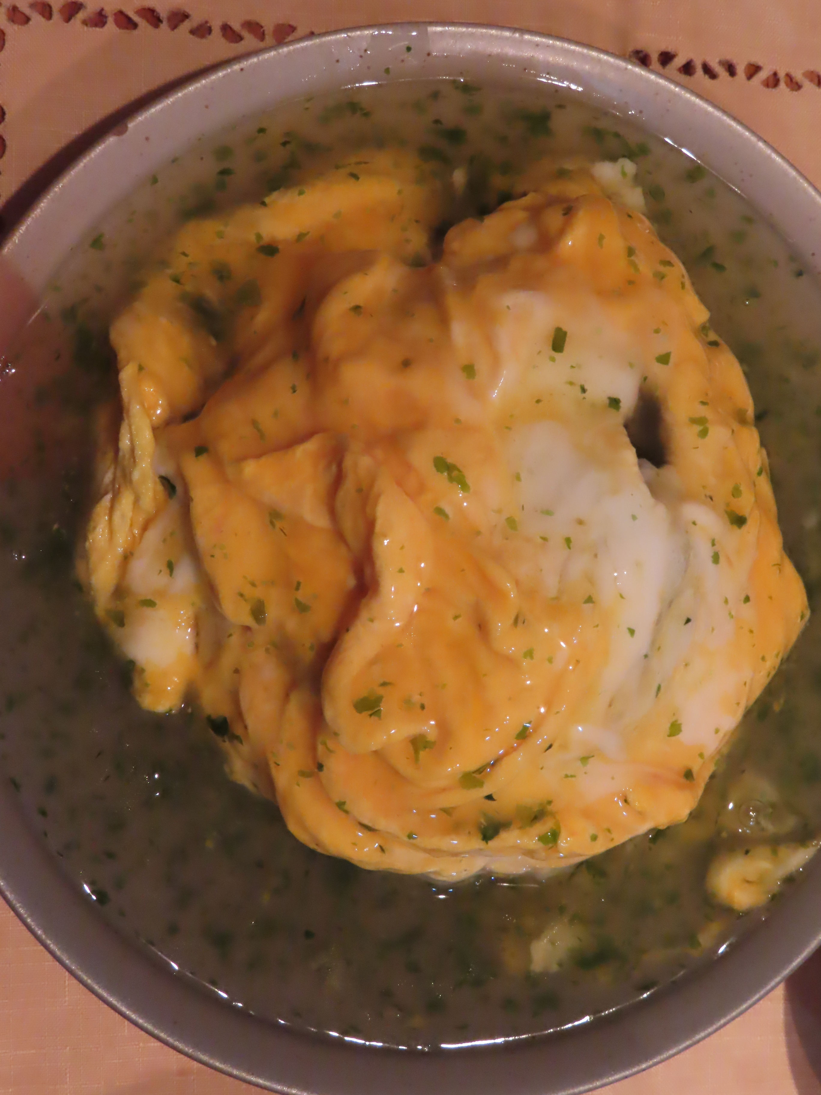 玉子を焼くときにたっぷりめのマヨを入れてとろとろ加減強めに焼き上げて、ご飯にのます。そして玉子の上から昆布とカツオの合わせ出汁で作ったあおさ入りの餡をたっぷりかけています。