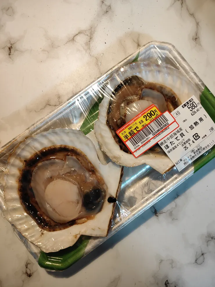 夕方スーパーに行ったら、帆立が半額〜♪♬♪