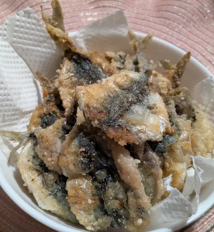釣りたて揚げたては又、格別でしょうね。パンダさんも笹の葉弁当持って、お弁当箱の中でランチタイムまでスタンバイしてるのかな?