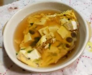 お正月で疲れた胃にやさしい料理を 昨日の夕食に作りました!みんなお正月に美味しいものを食べ過ぎて、胃が疲れているかなぁと思い、天津飯のような卵焼きに、餡をかけてみました。しめじ、カニ缶、三つ葉、豆腐を炒め合わせたところに、マヨを入れた卵を流し入れて焼きました。最後に、やさしめの味付けにした餡をかけました。寒かったので、熱々の餡がちょ