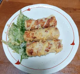 ちくわサラダ作りました💞美味しくパクパク食べてしまいました(笑)ちくわにポテトサラダを入れて天ぷらの衣つけて揚げました。