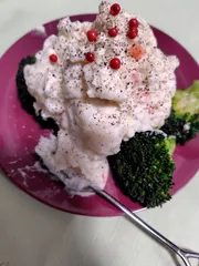 ピンクペッパー乗せ ゴロゴロポテサラ🥔 🥦添えクリスマスのピンクペッパー乗せ。