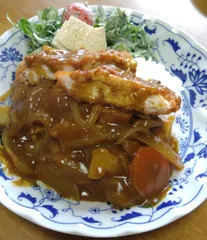 チキンカツカレーに水菜とリンゴのマヨネーズサラダを添えました。 マヨネーズ系とカレーは合います🍛リンゴの甘さ、水菜のシャキシャキで美味しく頂きました