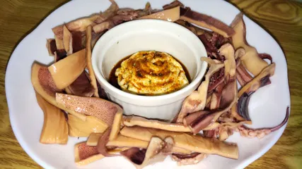 柔らかくしたアタリメに醤油と唐辛子にマヨ