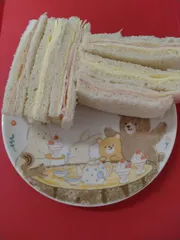 パステルカラーのサンドイッチ🥪 お皿のイラストと合わせて心も身体も癒されますね💫