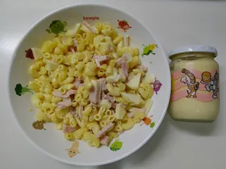 おいしそうなブレンドマカロニサラダですね 色取りも綺麗でおいしそう