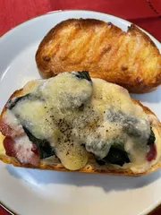 ライ麦パンに 🟥マヨ+グラニュー糖🟥マヨ+🐖タン+🥬+チーズでどちらもこんがり焼きました😋食べ応えのある美味しさでした♪
