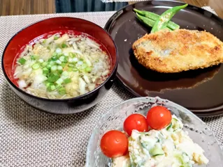 リーフレタス、きゅうりと一緒にポテトサラダをいただきました。