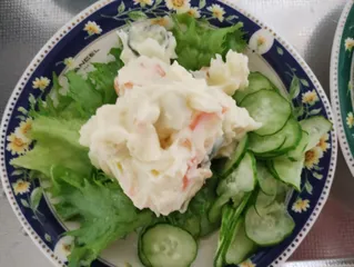 朝食に リーフレタス、きゅうりと一緒にポテトサラダをいただきました。