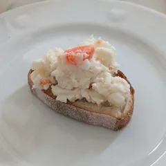 パンの上に、ポテトサラダ。じゃが芋はしっかり、つぶしています。(旦那の好み) もちろん、実際はこの数倍量食べています。。。