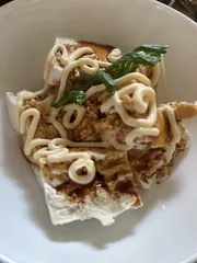 木綿豆腐に蒲焼のタレとカラシマヨネーズ