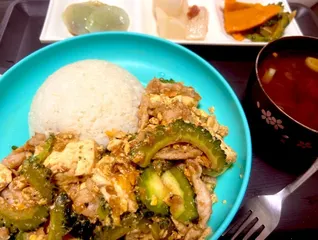おひるとばんごはん 今日はゴーヤチャンプルーの卵とチャーハンの卵 に使いましたー。この間も炒飯食べたばかりだけどTV和田明日香のゆる宅飲みに触発されてネギ油が多めにできてしまったので..あんまり上手じゃないので卵のほどよい存在感が出せない自分なのでした..