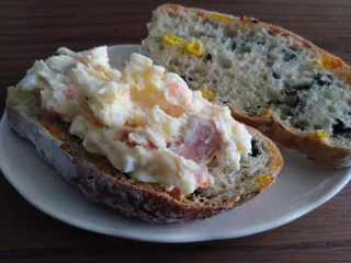 昨日のポテサラ ポテサラを作った翌朝は、お気に入りのパンにたっぷりのせて食べるのが定番です😊