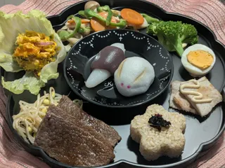 昨日は【中秋の名月】🌕️お月様は見られましたか。私は綺麗な満月を観ることができました。 ◆お月見御膳◆ 【かぼちゃサラダ】【黒酢たまねぎドレッシングの野菜炒め】【ブロッコリー マヨネーズ添え】【ゆでたまご 燻製マヨネーズ添え】【自家製焼きハム 芳醇トリュフマヨネーズ】【玄米ご飯