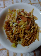 今日のお昼ごはんに冷蔵庫にあるもので焼きそばを作りました。食べる時にキユーピーマヨネーズはつけません😅具材を炒めるときにキユーピーマヨネーズを使いました。ちょっと焦げ気味(笑)