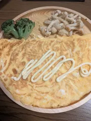 明太入りの卵焼きが好きです。今日は、オムレツにしました。なかは明太マヨ、外にもマヨです✨️