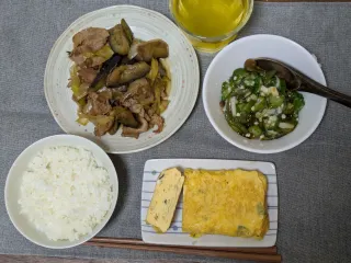 豚バラとナスの甘辛マヨソテーと出汁巻き玉子