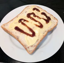 マヨはぬりやすい 粒々のライ麦パンに、マヨ+ソース。