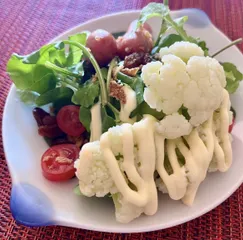 ベランダ菜園だからひと苗ずつだけど大事に育てて収穫出来て美味しく食べれた時には人一倍嬉しかったりします。 さっと熱湯くぐらせて冷水につけると透き通った白いカリフラワーに変身。 新鮮なカリフラワーやロマネスコは薄く切って生で食べれることも出来るよ楽チン。 ルッコラも、サニ
