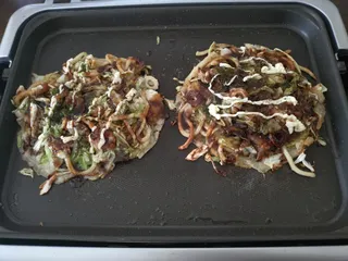 ホットプレートでお好み焼きおいしそうです❣️ お好み焼きにマヨネーズ、おいしいですよね💕 お好み焼きのマヨフォト見る度に食べたくなります( 笑 )