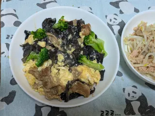 きくらげと卵の中華炒め 卵にマヨ入れてました。ふわふわ卵とコリコリきくらげの食感が楽しい。