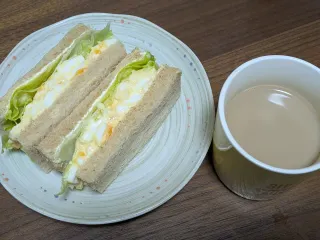 マヨネーズたっぷりのクリーミーたまごサンド。いつもマヨネーズたっぷり過ぎちゃう。