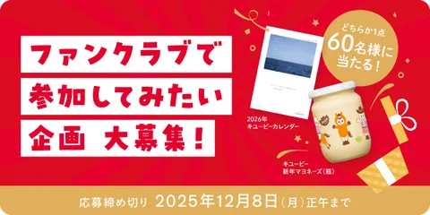 「キユーピーカレンダー」or「キユーピー 新年マヨネーズ(瓶)」が合計60名様に当たる!ファンクラブで参加してみたい企画を大募集!