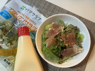 朝食のサラダ 朝ご飯にキユーピーさんのサラダクラブを使ったサラダをいただきました♪