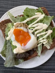マヨソテー ほうれん草と卵のマヨソテー🥚マヨネーズがプツプツとし始めてから溶き卵を加えて半熟くらいになったら下茹でしたほうれん草も加えてかき混ぜます。溶き卵には白だしと少しの砂糖を加えてあります。仕事で帰りが遅くなったのでお嫁さんがトンカツとコロッケを届けてくれました。野菜サラダにはお気に入りの深煎りごまドレッ
