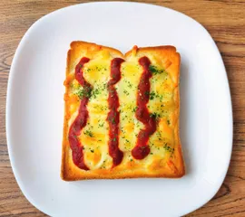 マヨチーズトースト。いつもはケチャップだけど、今日ピザソースにしてみました。