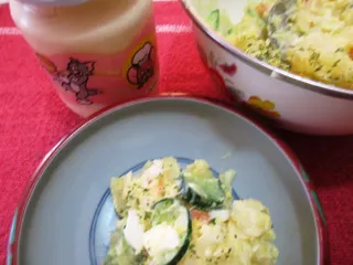 ポテサラです 大好きなポテサラ作りました。 ご飯にもいいですが、トーストにのせて食べるのが大好きです♪