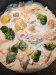 マヨ鶏もも肉と小海老のホワイトシチュー