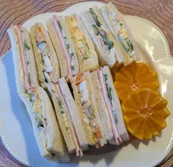 魚料理を作りながらサラダを作ったので、ついでにサンドイッチを作りました。日曜日の昼食です🥪 【ハムサンド】『ハム』『スライスチーズ』『わさび菜』『芳醇トリュフマヨネーズ』【ツナポテトサラダサンド】『ツナ』『ポテトサラダ』『アイオリ味マヨネーズ』【たまごサンド】『ゆでたまご』『にんじん』『た