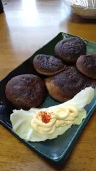 焼き椎茸&キャベツボート一味マヨ キャベツ器変わりにしてマヨネーズ一味。焼き椎茸頂いたあと、キャベツ器ごと頂きました🥢