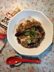 麻婆茄子豆腐 キユーピーさんの麻婆豆腐のレシピに、茄子🍆も加えて作りました♪しびれ麻辣味マヨだけをそのままちょっぴり舐めて「苦手🥴💦」と思ってしまってたけど…賞味期限2026.1.10←早めになんとかしなくては!と一念発起…花椒の香りがする世界マヨのおかげで🪄✨麻婆茄子豆腐💞おいしく出来ました✌️