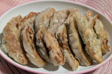 餃子♪ 強力粉と薄力粉とライ麦粉で皮を作り、餃子を作りました🥟 『鶏ささみ』『ホタテの貝柱』『たまねぎ』『キャベツ』『にんじん』『白ねぎ』『九条ねぎ』『にら』『しょうが』『青じそ』『塩こしょう』『すりごま』『ごま油』『砂糖』『お醤油』『マヨネーズ』『片栗粉』