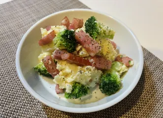 ブロッコリーやベーコンかしらアクセントになっていて美味しそうなポテトサラダですね