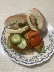 オープンサンド、ロールパン風作りました。チキンカツ、ハムカツ作りトッピングしましたマヨネーズたっぷりかけて食べました!