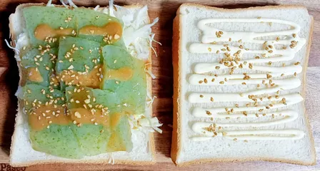 刺身こんにゃくの酢みそマヨサンド🙄 酢みそとマヨ、よく合います ♡こんにゃくとパン、なんともいえない新食感です ☆