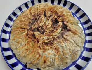 お昼ご飯。肉だねにマヨネーズ混ぜて作りました。中心が少し焼きすぎ、周りの羽根も出来ていましたがフライパンの壁際でカーブしてしまいましたが、醤油•酢•ラー油で美味しく頂きました。焼売はレンチンで。🌻