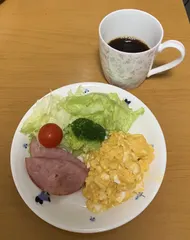 朝食にマヨネーズを入れたスクランブルエッグを作りました。レタス🥬とブロッコリー🥦にもマヨネーズをかけていただきました。